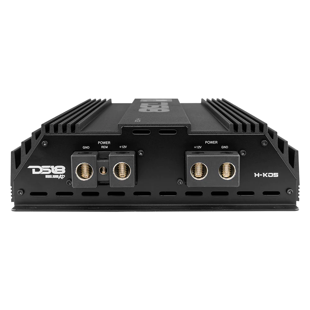 The H-KO5 is a new offering from DS18 to push a multitude or larger subwoofers to the maximum all while using half-bridge Korean Monoblock power. Korean amps are traditionally known to be beefier and use the highest quality components compared to their Brazilian full-bridge competitors. Korean amps are known to have the highest signal to noise ratio of all amplifiers available and have been proven through the ages to perform the best for SPL and loud bass in general.